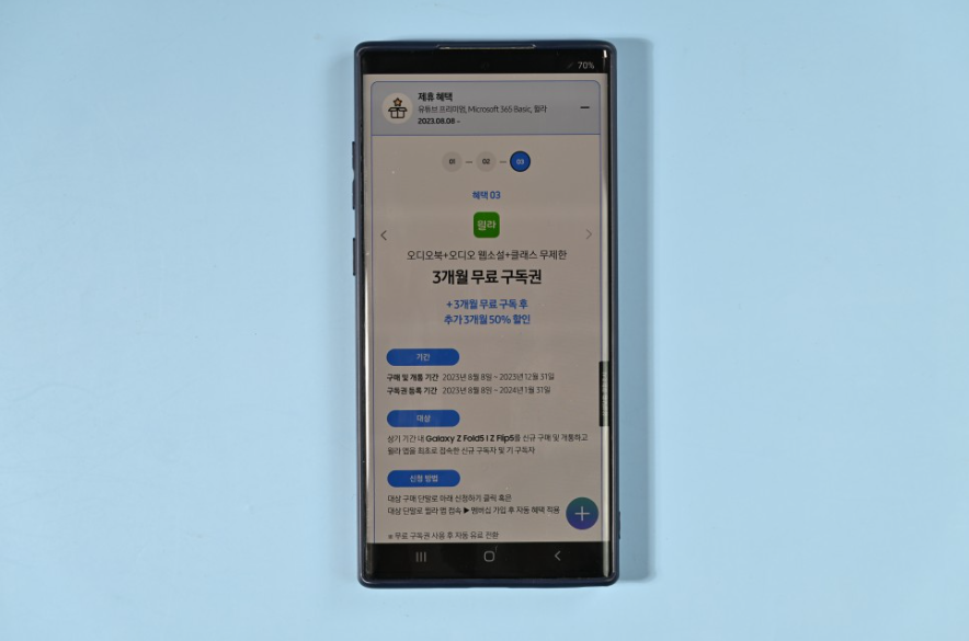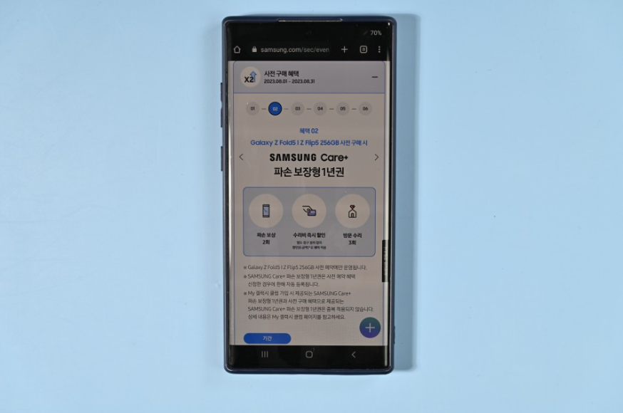 더블스토리지 혜택과 함께 삼성 케어 플러스 파손보장형 1년권을 제공합니다. 폴더블같이 고가의 스마트폴에는 삼성케어 플러스 같은 상품이 꽤 도움이 될 것 같습니다.