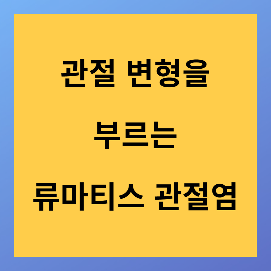안녕하세요 오늘은 관절 변을을 부르는 류마티스 관절염에 대해서 알아보려고 합니다. 류마티스 관절염은 많은 사람들에게 알려져 있는 관절 질환인데요 류마티스 관절염의 증상에 대해서는 많이 알고 있지만 류마티스 관절염으로 인해 2차적으로 발생하는 신체적 변화에 대해서는 자세히 알지 못할 것입니다.
