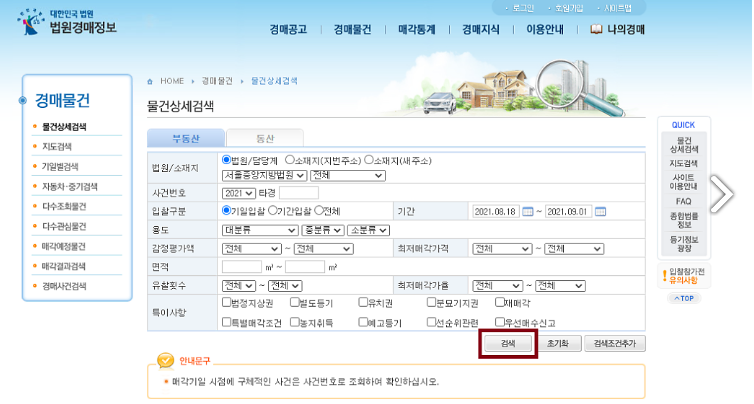 법원 경매 검색 방법