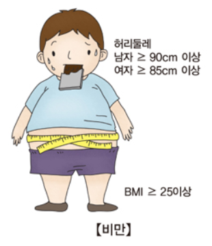 ① 허리둘레 : 남자 90cm, 여자 80cm 이상